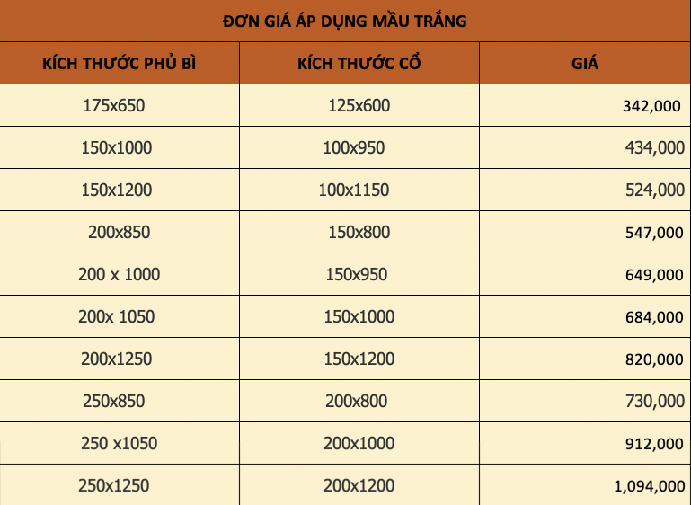 - Màu trắng : 150x800 giá 547.000đ